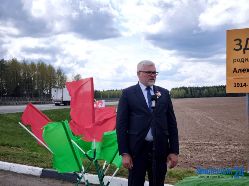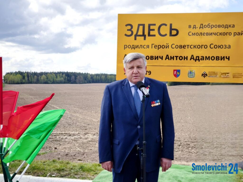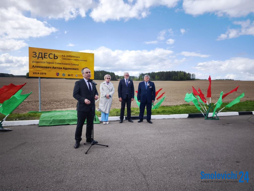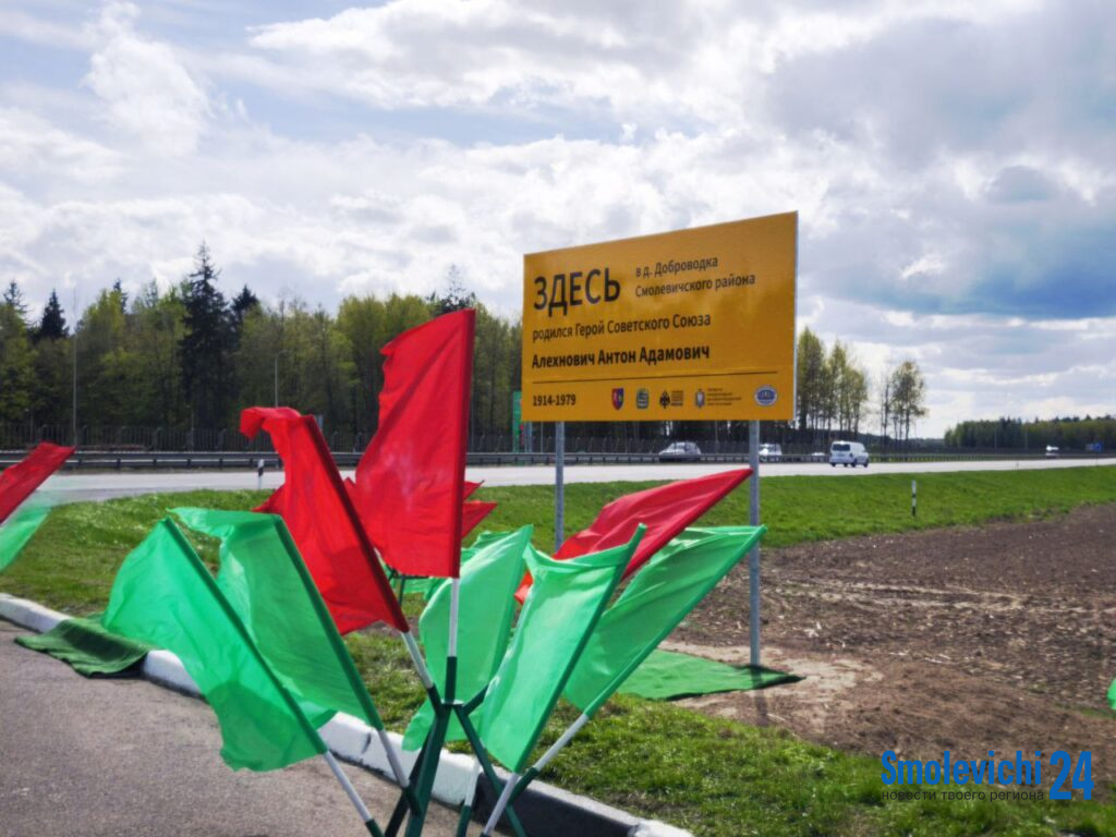 Первый билборд, посвященный Герою Советского Союза Антону Адамовичу Алехновичу, открыли 25 апреля в Смолевичском районе.